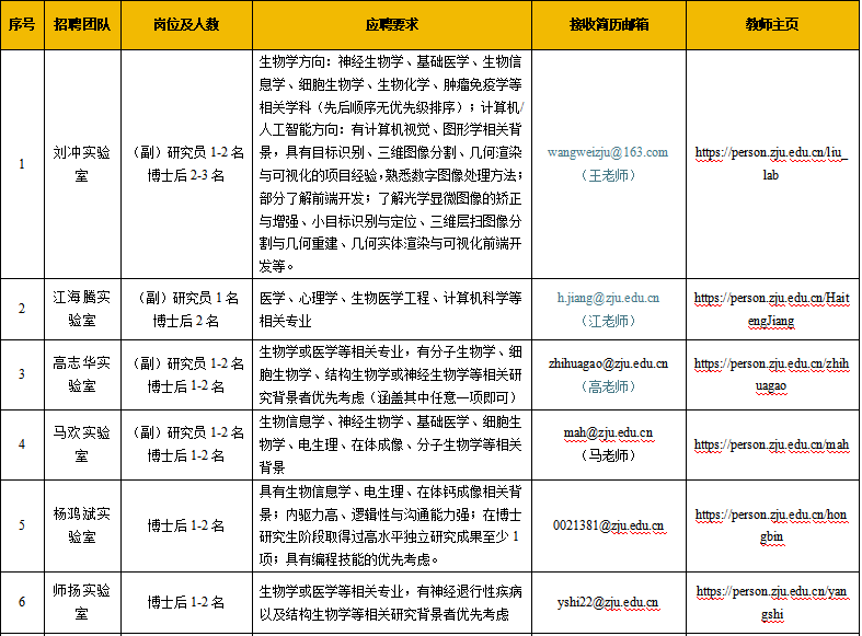 良渚实验室重大神经精神疾病领域领域2026年度招聘需求汇总
